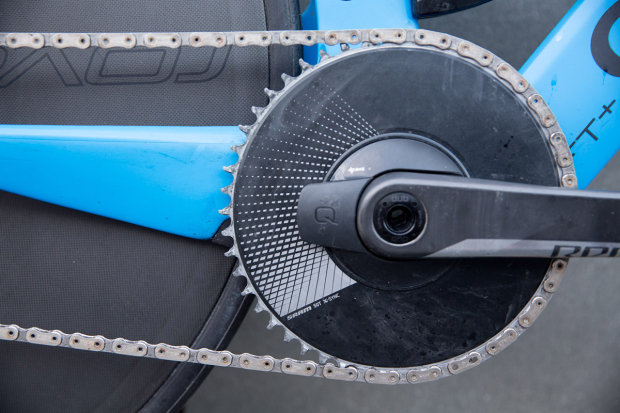 Hovda is 180cm tall and weighs 68kg and rides a 52cm Quintana Roo PRSix2 Disc in matte blue with a matching Qbox. The rear wheel is a Specialized Roval 321 and the front one is a HED Vanquish 8.