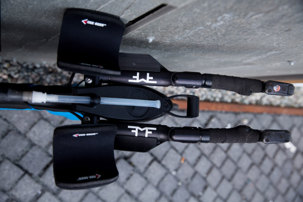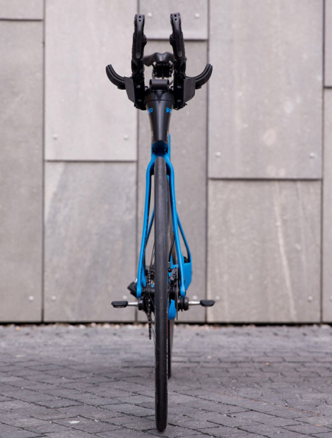 When looking from above the custom made Aerotune arm rests are easy to spot, as are the cushy pads by CEE GEES. "The Aerotune arm rests are 3D-printed in plastic and only a demo version to test before they make the "real ones" in carbon. It did, however, work well enough to use in the 24hour ride and Norseman Solo," said Hovda.