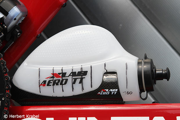 Ibert custom mounted the XLab Aero TT bottle super low and only uses the lower bolt and double sided tape. The tires front and back are Continental Competition Pro Limited ALX 25mm Latex.