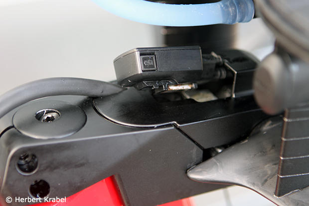 The Shimano Di2 junction box has a magnet mounted underneath so it snaps easy and secure into the place.