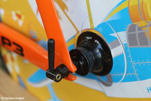 Hellriegel has worked with Hannes Hawaii Tours for a long time and thus this very colorful and unique Zipp disc wheel.