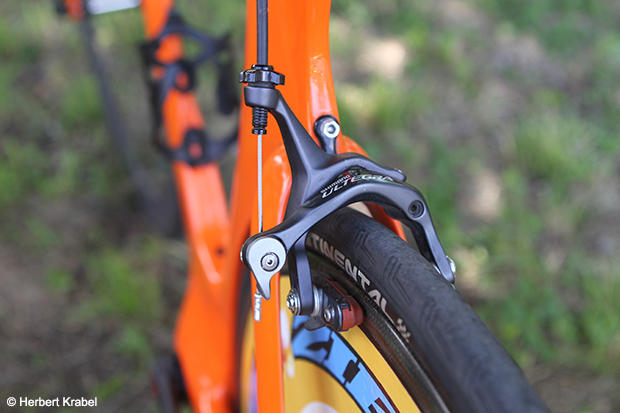 The simple Shimano Ultegra side pull brakes were somewhat of a surprise.