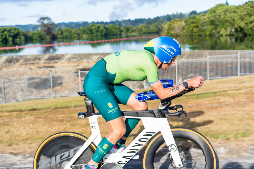 Surprisingly Taupo’s very own Kyle Smith wasn’t his usual aggressive self at the front of the bike. Turns out he’d had COVID last week, so was still recovering from that as he hit the race course today.