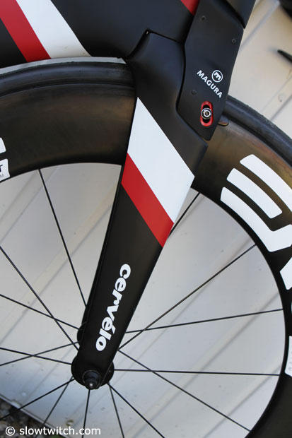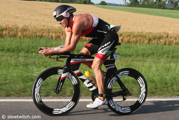 South African James Cunnama finished 5th at the 2014 Datev Challenge Roth and here is a closer look at his Shimano and Enve Composites equipped Cervelo P5-6. We had checked his bike out last year too, but he is now on a new frame (P5-6 vs P5-3) with completely different components and wheels. Cunnama is 180 cm (5 ft 11 in) tall and weighs around 74 kg (163 lbs).