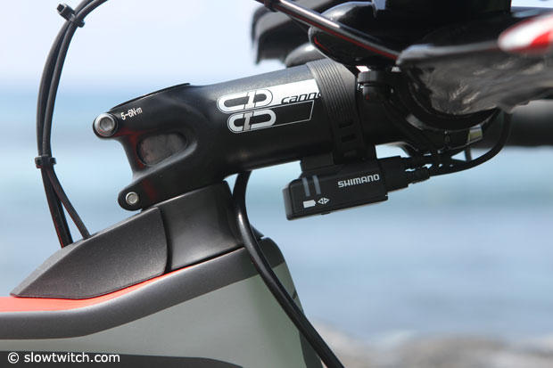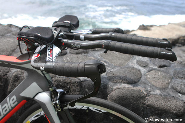 I immediately liked this bike when I first saw it in Roth, Germany in early July where a bright green one was piloted by Michelle Vesterby. I thought that the crew at Cannondale was on to something here, but it won't make everyone happy and Cannondale is aware of this. Instead of going full throttle down the aero path they decided on a balanced approach to triathlon performance, and focused on combining solid aerodynamics with ultra light weight, comfort, fit, handling and ease of use. And according to Cannondale designer Murray Washburn "A combination that will be of more use to real triathletes in the real world than small gains in pure aerodynamics."