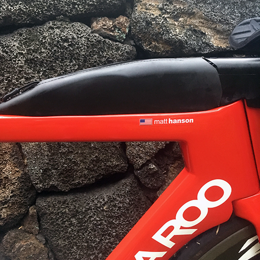 The Quintana Roo PRsix of Matt Hanson still has training tires mounted but it is otherwise primed and loaded for a big day in Kona.