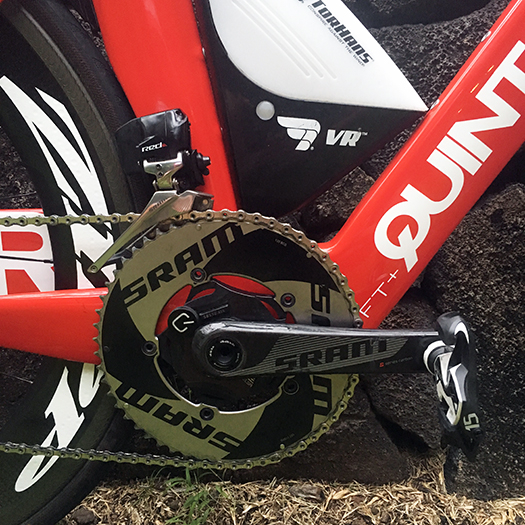 Hanson rides 170mm cranks and uses a Quarq power meter and 55-42 SRAM Red rings