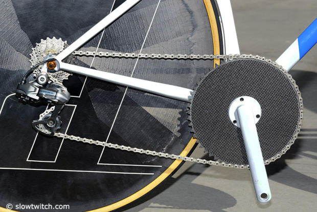"I would not yet be ready to commit to building something with the same integrated front end for a customer – I literally finished this right before the show, so haven't yet had a chance to test it. I will be racing it this season, so expect to be able to offer a similar design after it has undergone testing. Mind you, currently my waiting list is 22 months, so I should be ready by then," said English to slowtwitch.