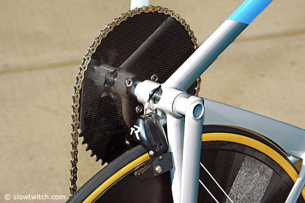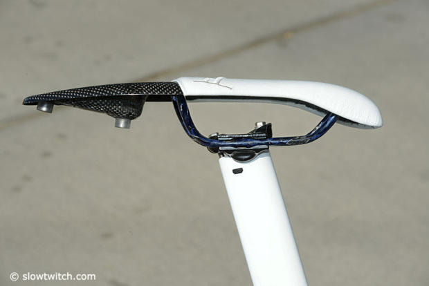 Narrow ovalized steel tubing is used extensively. The front wheel is an Enve SES 8.