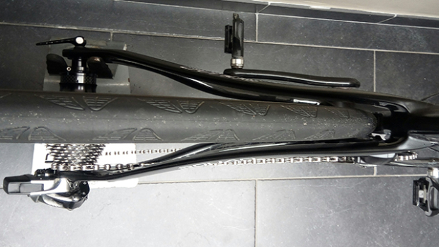 Van Cleven uses TRP brakes on his bike. Hidden under the BB for the rear wheel.