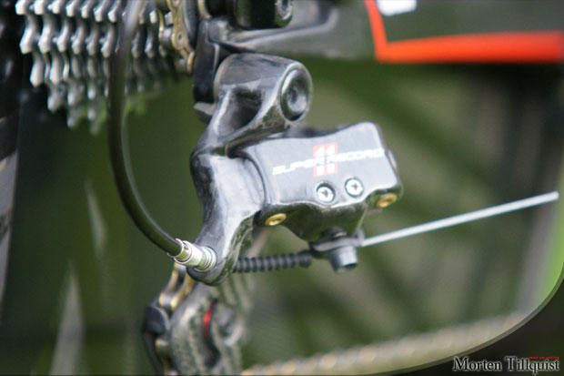 A Campagnolo Super Record front derailleur plus O.Symetric 54/44 chainrings and a Power2Max power meter.