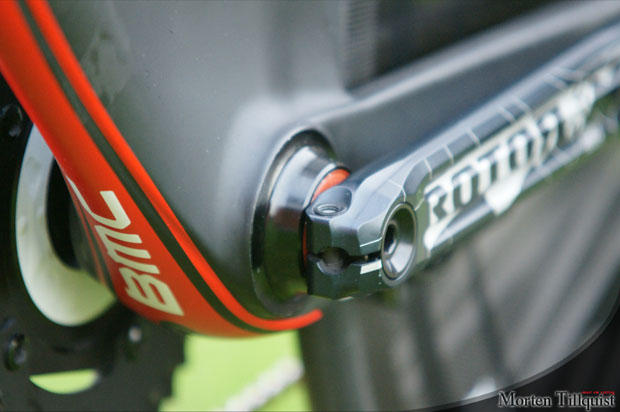 The underbelly of this bike and a look at the Rotor 3D 175mm cranks.