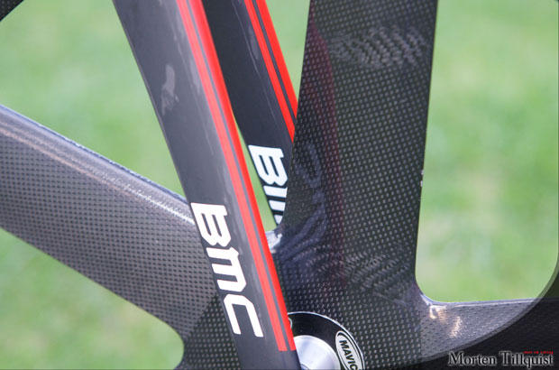 Morten said that the " Mavic IO front wheel I always use as first choice. And Zipp 808 front wheel will only be used there is cross wind of 10m/s or more."