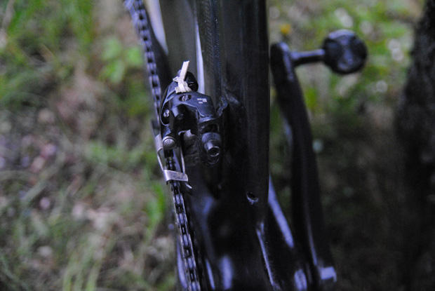 Snilstveit has a SRAM Force WiFLi 11speed rear derailleur that moves a Shimano 105 chain over the 11-32 Shimano 105 cassette. He though considers replacing that chain with a SRAM Red22.
