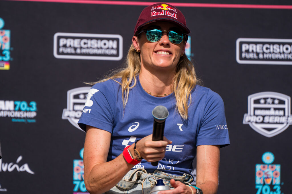 The IRONMAN 70.3 World Championship pro press conference took place in Marbella, Spain, on Thursday, with the five top athletes from both the men’s and women’s races present to discuss the upcoming race. Of the 10 athletes on the panel, six were former 70.3 world champions, including reigning champions Taylor Knibb and Jelle Geens. The athletes had a lot to say with the races just days away. The women kick off the weekend of racing on Saturday morning, followed by the men on Sunday.