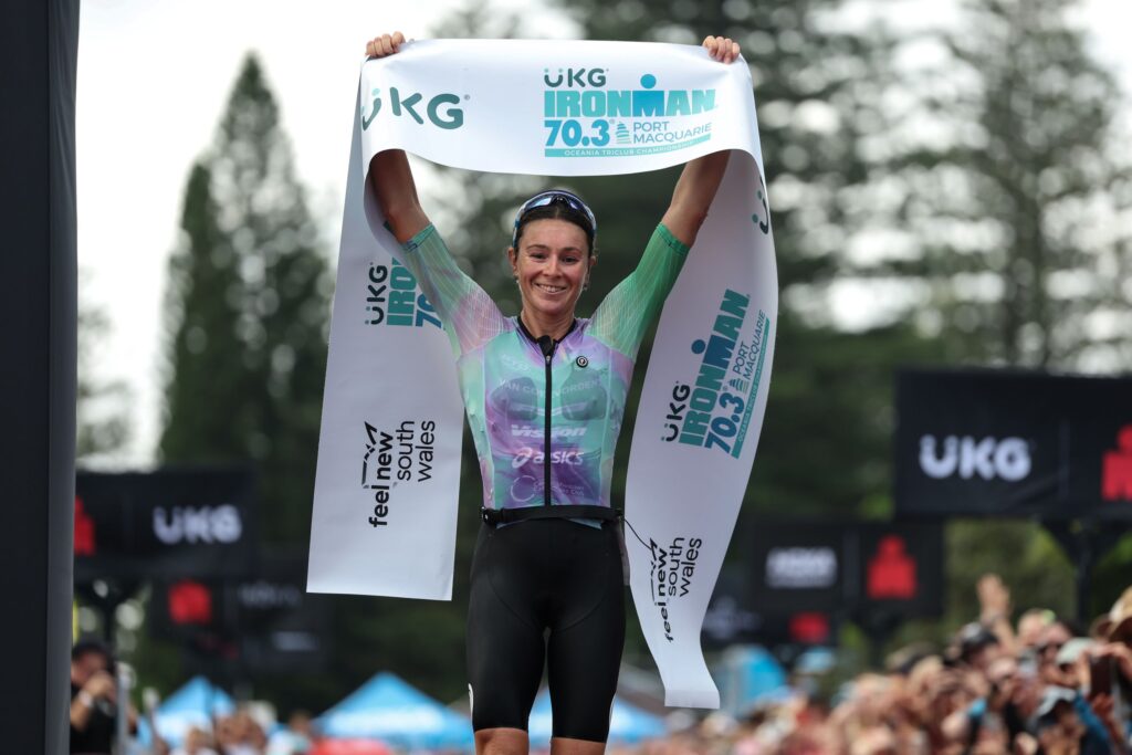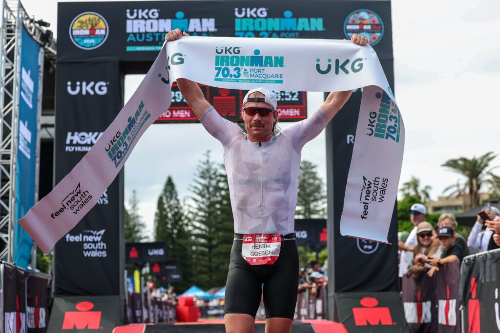 Finland’s Henrik Goesch topped the men’s field, winning his first 70.3 by just under a minute over New Zealand’s Sam Osborne, with Aussie Caleb Noble finishing third.