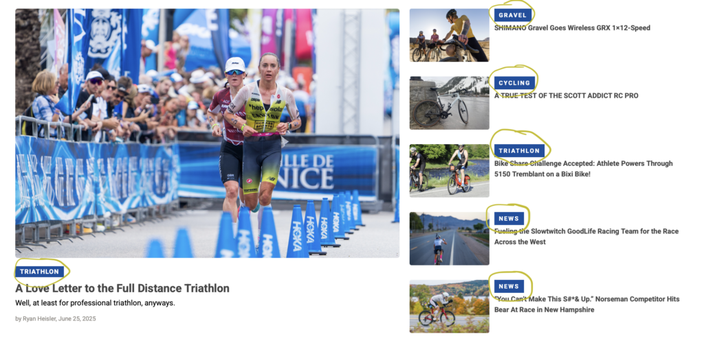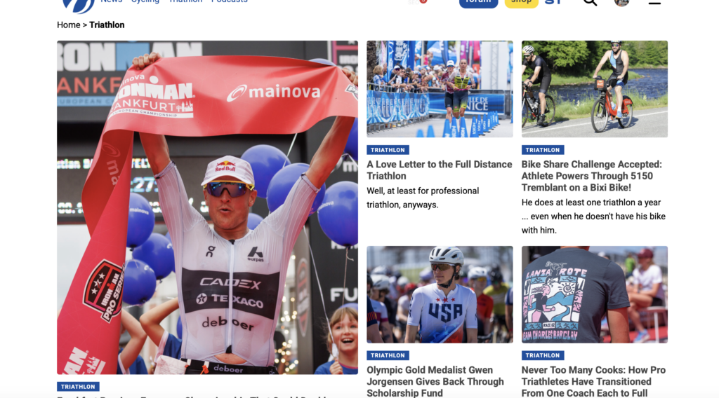 That will take you to all articles within that sub category. Feel free to bookmark these if you have a favorite; for example, I like to have the triathlon category bookmarked.