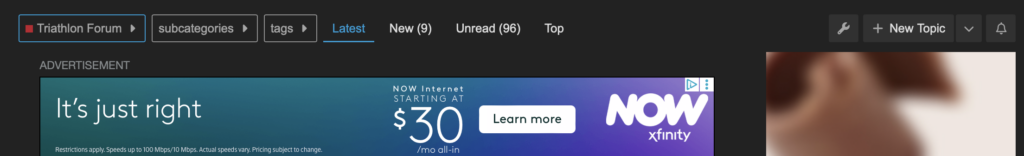 Navigate to the category that you’d like for a new thread to appear in (e.g., the Triathlon Forum), then click on “New Topic.” Then otherwise, post as you regularly would.