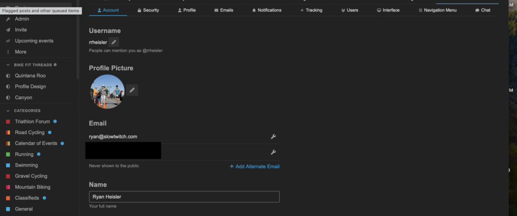 The software that powers the Slowtwitch Forums offers a high degree of individual customization. For example, you’ll notice that the color of the forum in these screen grabs changed midway through — that’s because this user has gone to a preferred display theme, which changes the color palette of the forum.